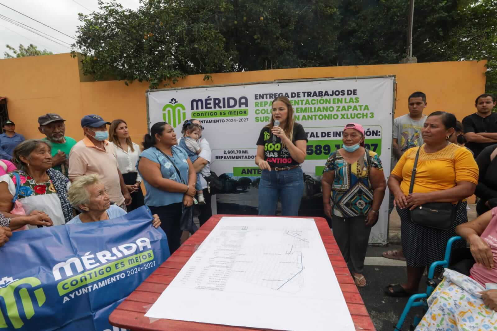 Durante la jornada más reciente, la presidenta municipal entregó trabajos de repavimentación en la colonia San Antonio Xluch. La obra comprende una vialidad de 2.5 kilómetros que también beneficia a habitantes de Emiliano Zapata Sur III, al mejorar la conexión entre colonias del sur de la ciudad.